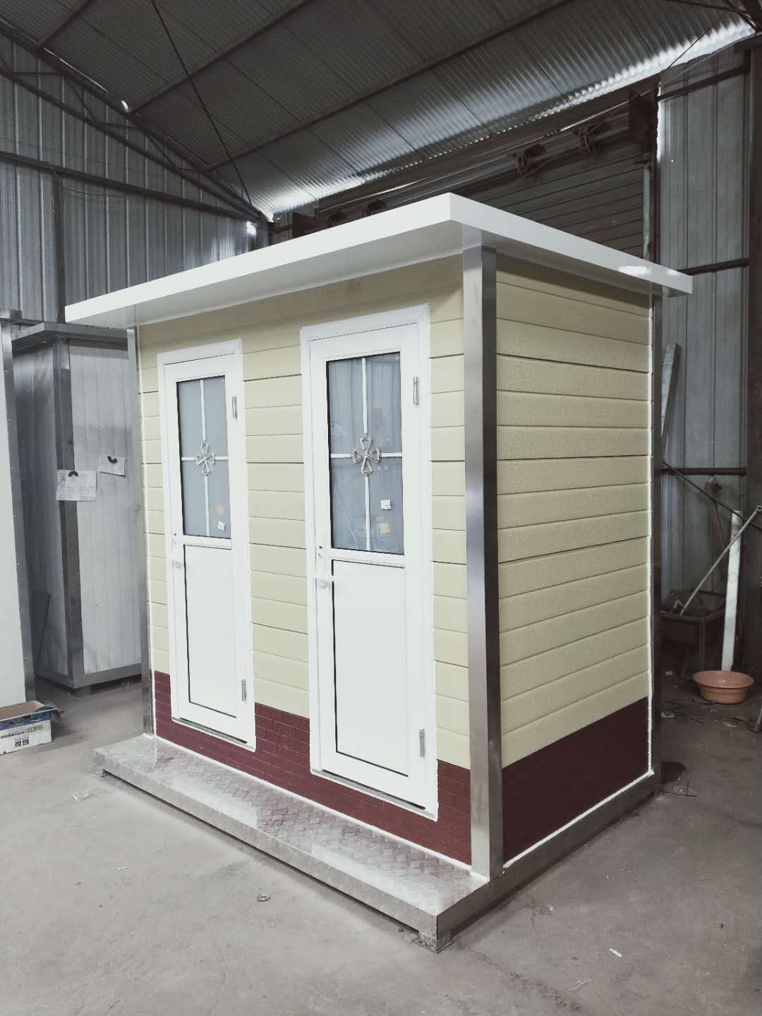 彩鋼板是在鍍鋅板的基礎上添加染色圖層工藝后的一種材料,既有鍍鋅鋼板原有的特性,又豐富了色彩。有一種崗亭產品叫彩鋼崗亭,就是用這種材料作為外墻制作的。常見有白色、灰色、藍色等。但在不銹鋼崗亭中,常用白色彩鋼板作為崗亭的內墻裝飾材料,也可以吊頂材料。