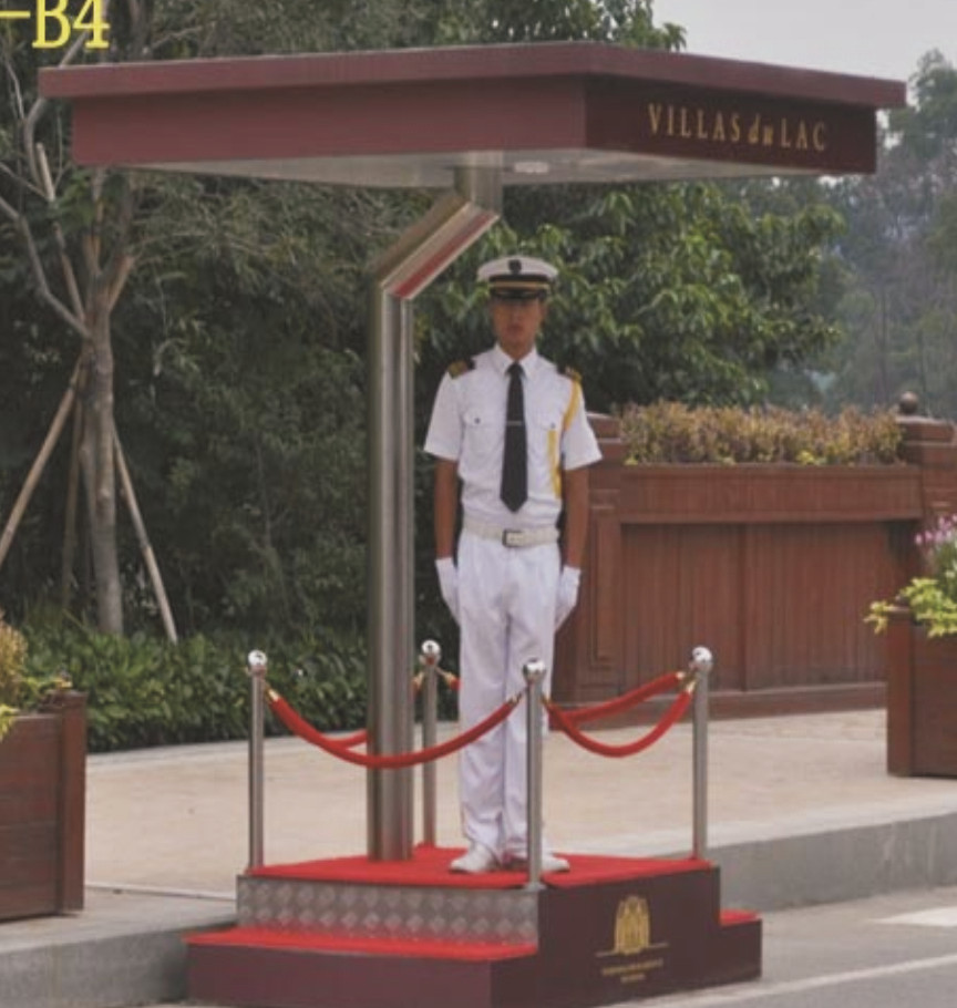 不銹鋼值班站臺的材料外形以不銹鋼材料為主,崗亭結構以鋼龍骨為主,主要材料是40x80x2.0mm鍍鋅鋼管,采用先進的氬弧焊技術焊接而成,外面板為1.2mm不銹鋼面板,款式可根據客戶的需要來定制;鋼結構值班站臺不同于不銹鋼值班站臺,有相同于它,不同之處在于鋼結構值班站臺的外形材料一般為1.2mm鍍鋅鋼板,通過打磨,刷防銹底漆,最外一層為面漆,顏色可選,相同之處為都為鋼結構龍骨。